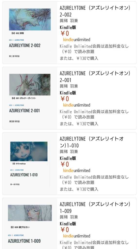 kindle (キンドル) とは ( 火をつける、輝かせる )という意味。 Amazonの本に関するコンテンツは、 このKindleの名称を冠しており、 知恵の焔の意味合いが込められてるとかんじます。 いつものスマホやタブレットにKindleアプリを入れておくことで、いつでも読書を楽しめます。 うちのAZURELYTONE (アズレリイトオン)シリーズも、kindle Unlimited の読み放題でご利用いただくのをオススメしています。 こちらから↓ 共有: クリックして X で共有 (新しいウィンドウで開きます) X Facebook で共有するにはクリックしてください (新しいウィンドウで開きます) Facebook クリックして WhatsApp で共有 (新しいウィンドウで開きます) WhatsApp クリックして Pinterest で共有 (新しいウィンドウで開きます) Pinterest クリックして友達にメールでリンクを送信 (新しいウィンドウで開きます) メールアドレス その他 クリックして LinkedIn で共有 (新しいウィンドウで開きます) LinkedIn クリックして Reddit で共有 (新しいウィンドウで開きます) Reddit クリックして Tumblr で共有 (新しいウィンドウで開きます) Tumblr クリックして Pocket でシェア (新しいウィンドウで開きます) Pocket クリックして Telegram で共有 (新しいウィンドウで開きます) Telegram いいね 読み込み中… 投稿者: Azu イラストとストーリーのサイトです。 世の中の物事や、心の模様を、独自のイメージで例えたり表現します。 Azu の投稿をすべて表示